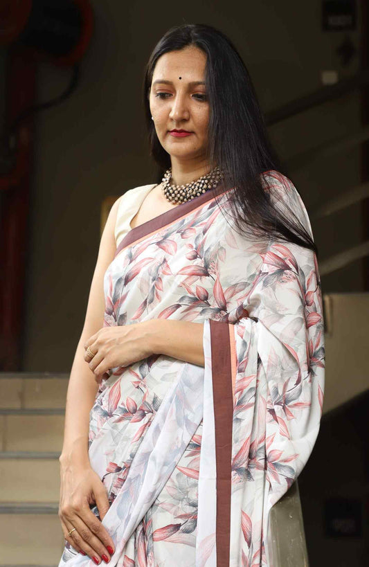Buy Ivory Embroidered Faux Mirror work Saree | Godhuli