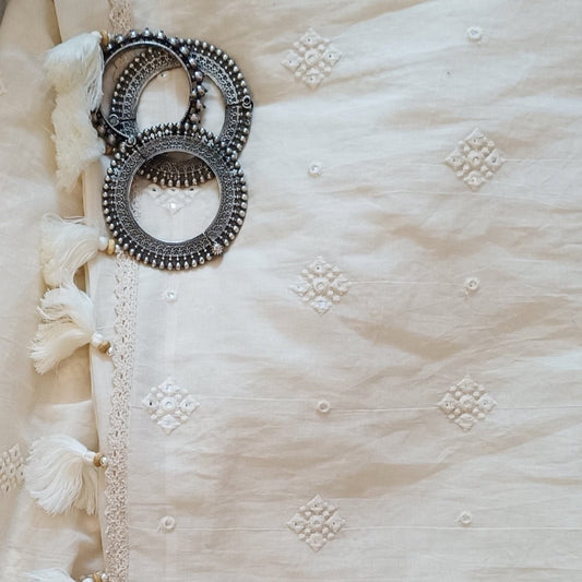 Buy Mulmul Ivory Faux Mirrorwork Saree Blouse Combo | Godhuli