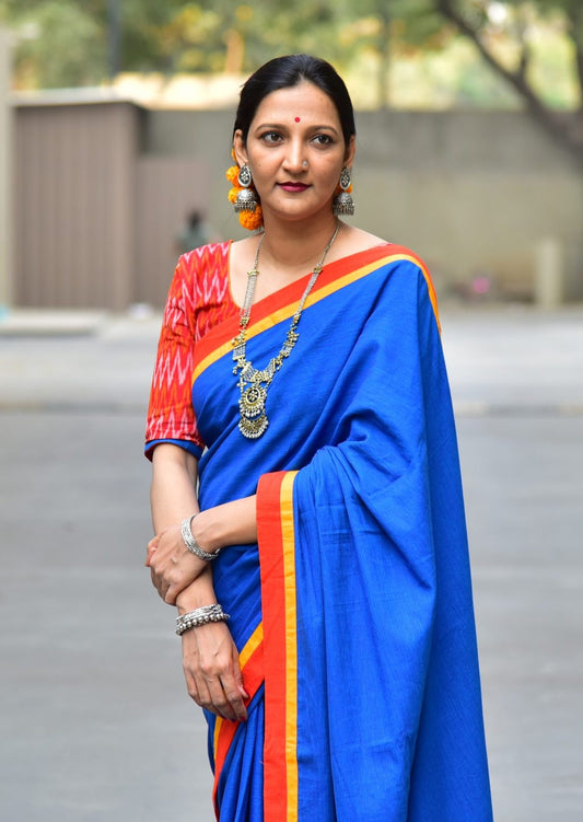Buy Rani-Blue Patli Pallu Mangalgiri Saree | Godhuli