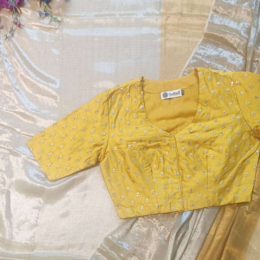 Buy Yellow Zari Work Silk Blouse | Godhuli