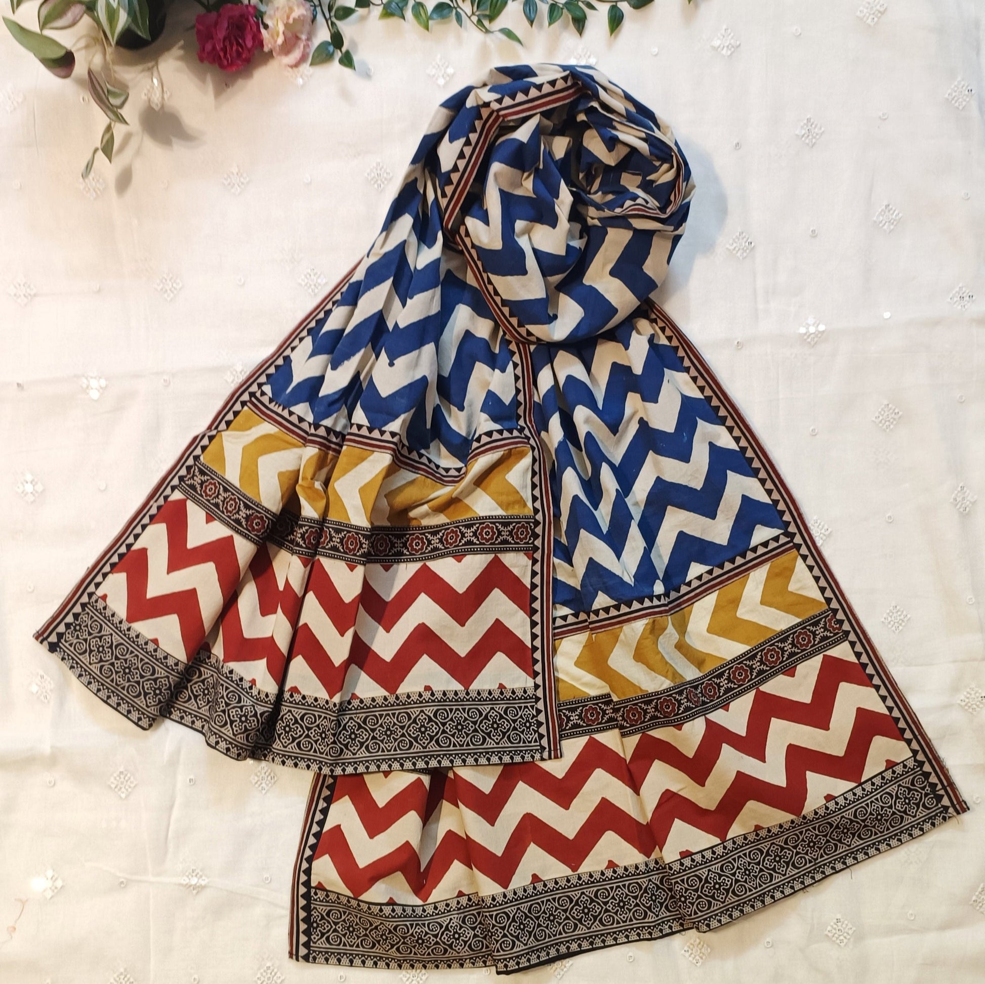 Buy Blue Chevron Print Patchwork Dupatta | Godhuli