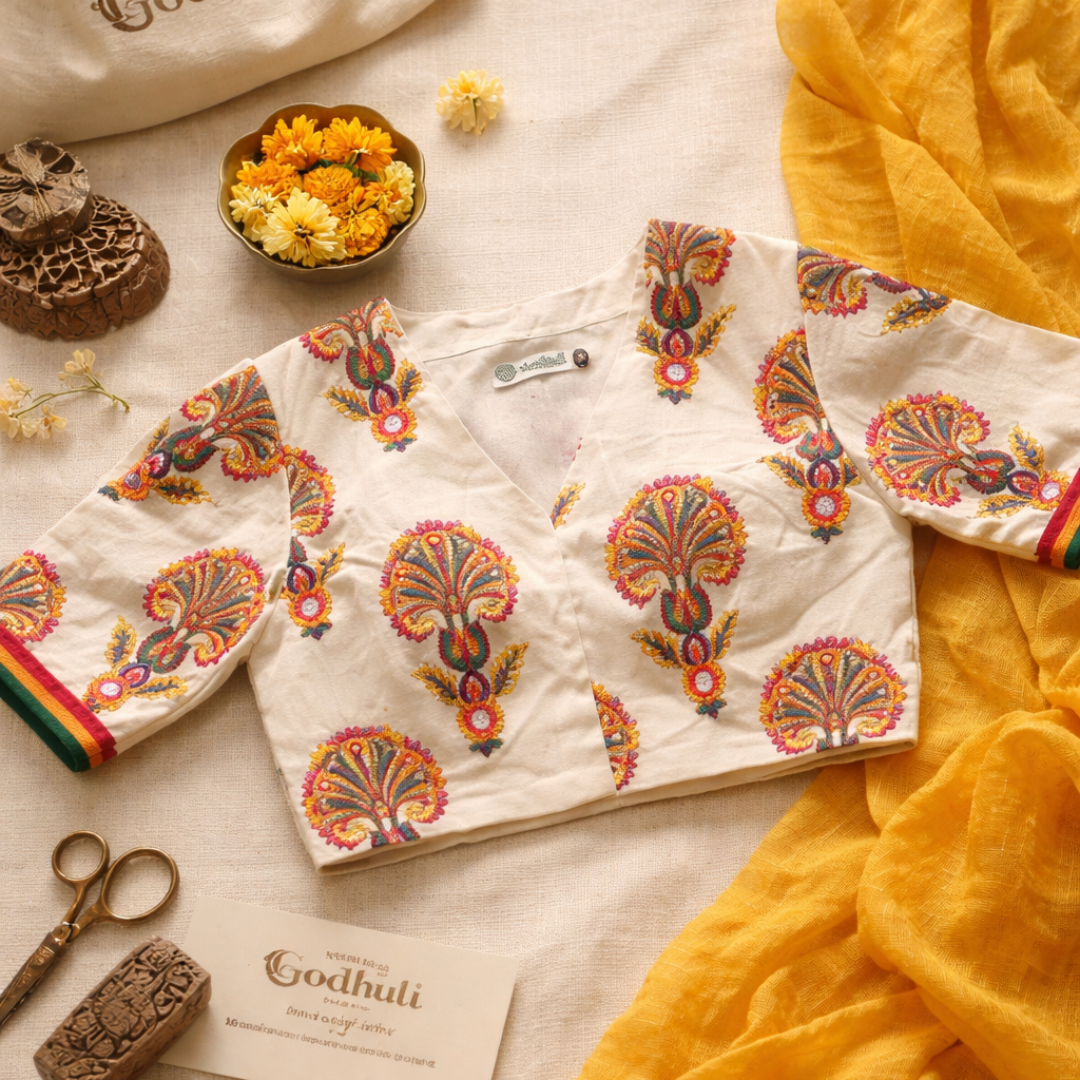 Buy Ivory Multicolour Embroidery Blouse | Godhuli