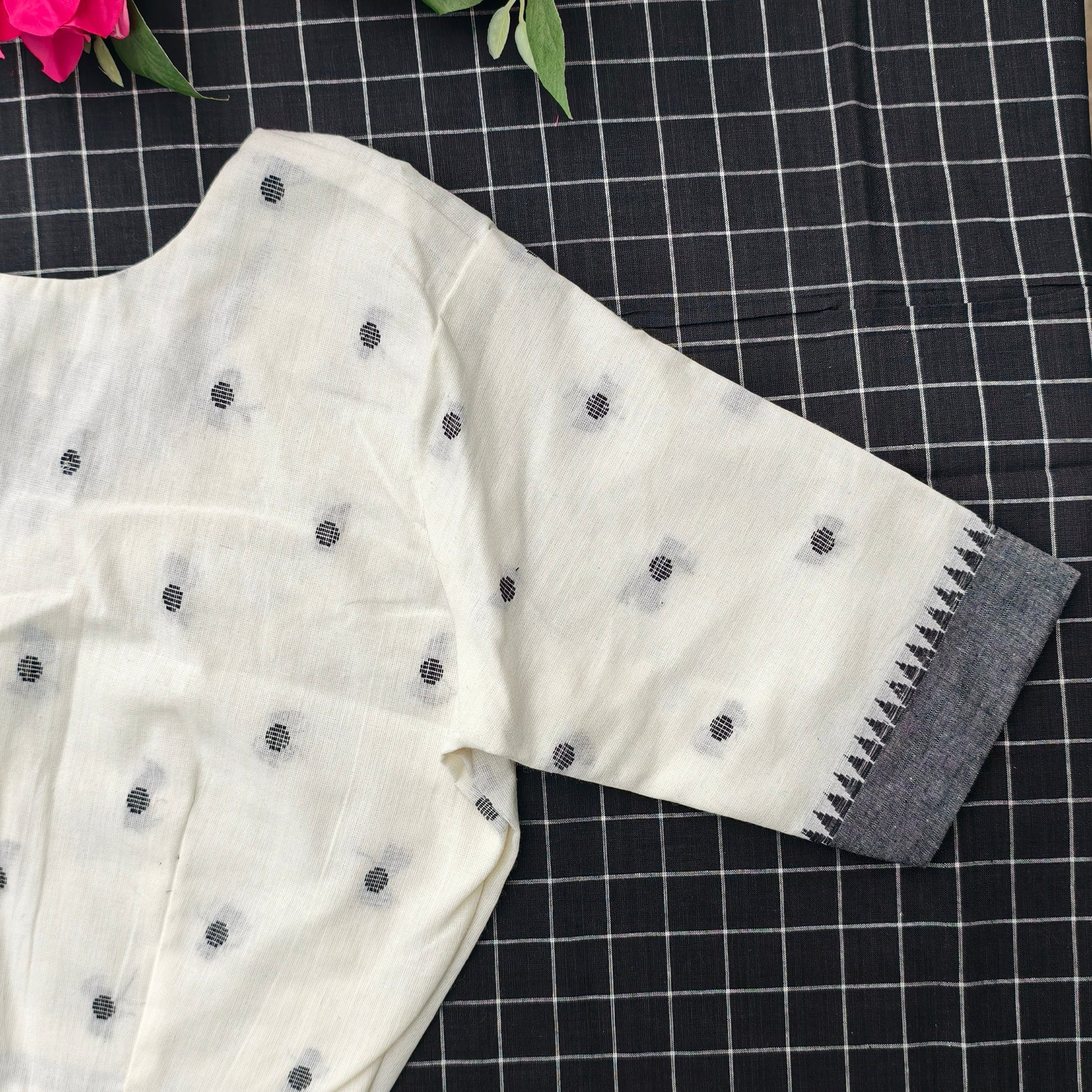 Off White Jacquard Dot Readymade Blouse | Godhuli